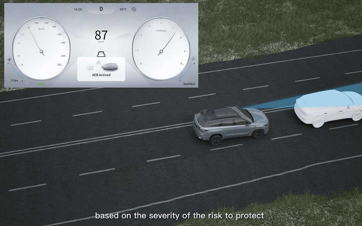 Mendeteksi potensi benturan dari arah depan dan secara otomatis mengaktifkan pengereman untuk mengurangi risiko tabrakan secara signifikan.